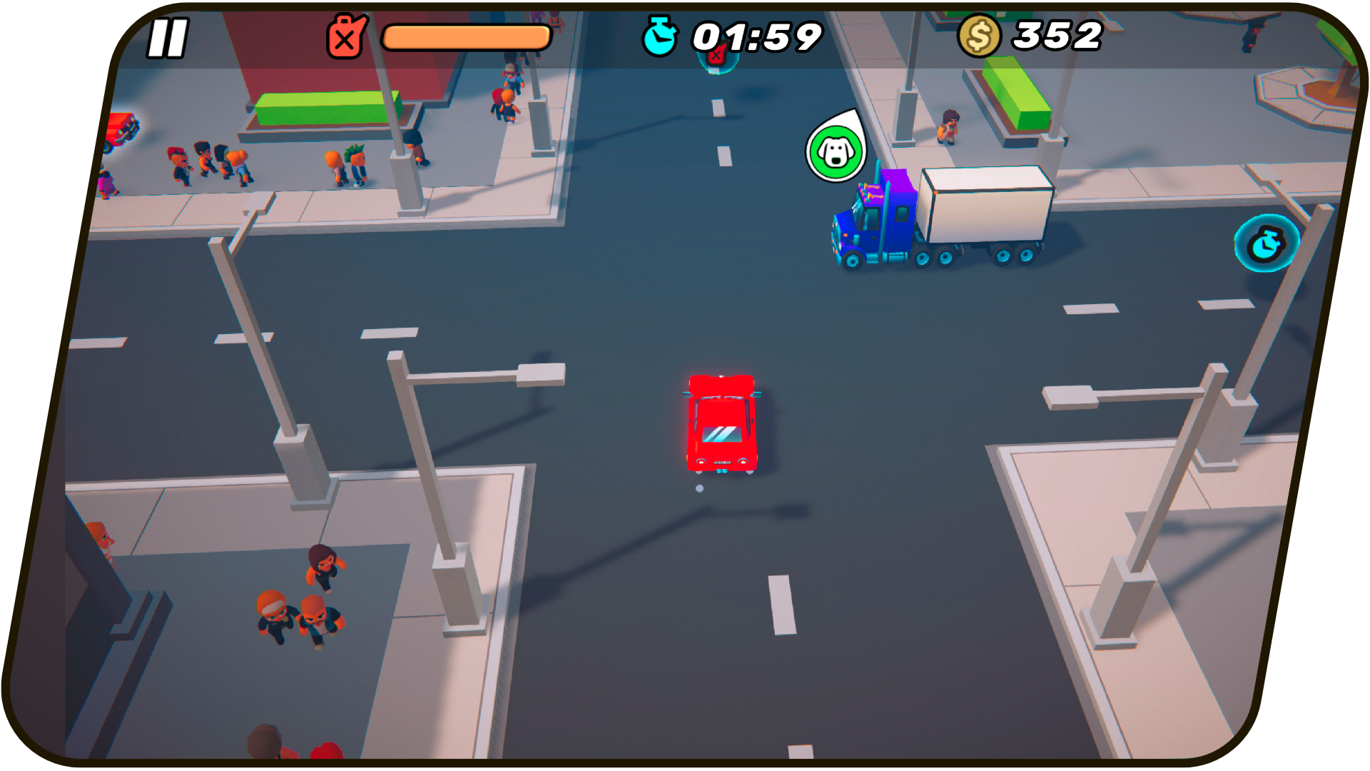 Full quests and map unlocks by progress added. Full save system added. Intro tutorial added. Map unlock load screens added. Early stage quest log on the start page, missing final graphics. Game is more alive and more optimized. New player car navigator. Car camera further fine tuned. Camera shake added with slight random modulation for less static repetition. NPCs pop with funny sound. Many bug fixes.